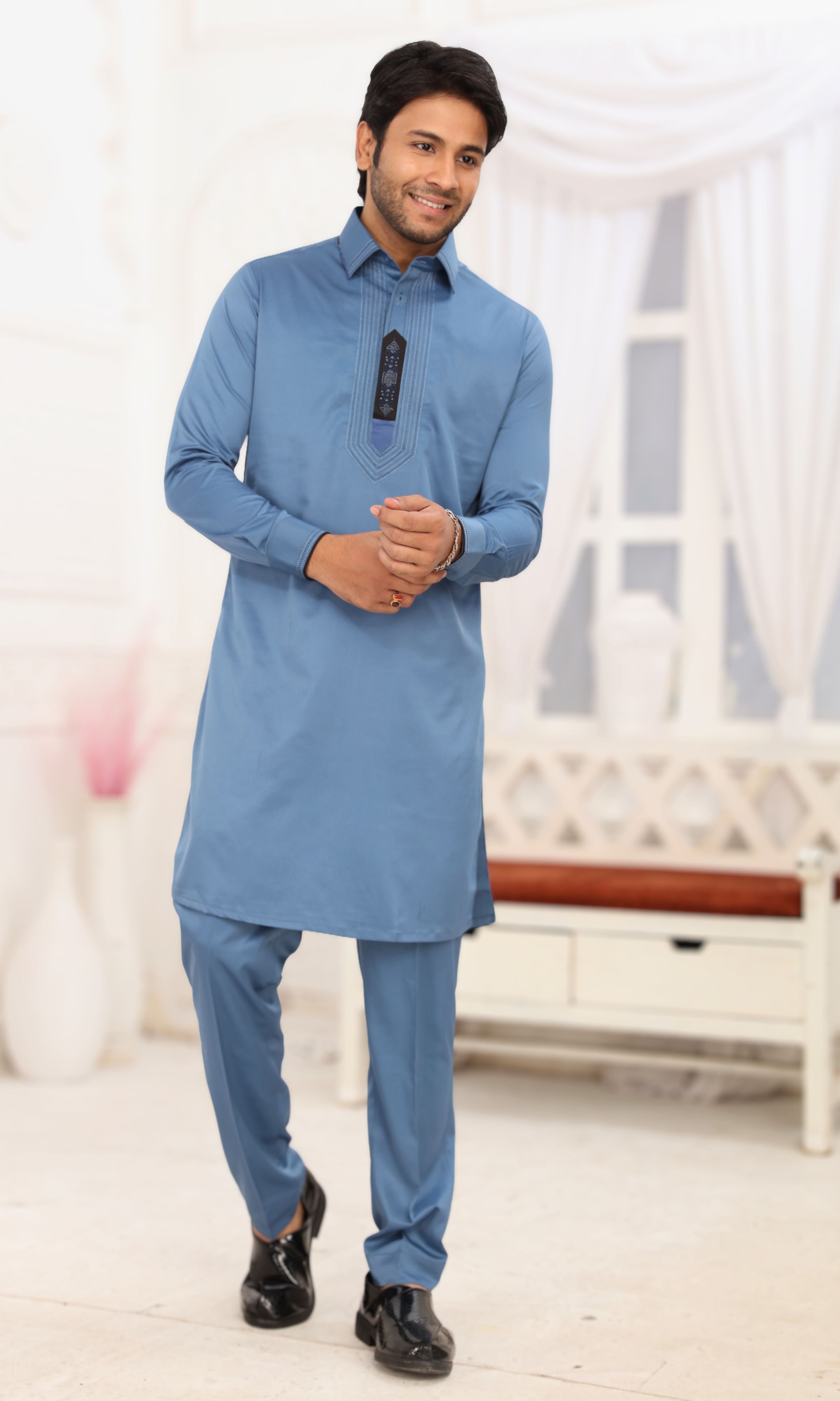 Tailored for a clean and modern silhouette, the kurta pairs perfectly with matching bottoms. You can choose pant or shalwar as per your comfort and styling preference, making it a versatile choice for festive gatherings, casual occasions, and traditional wear.