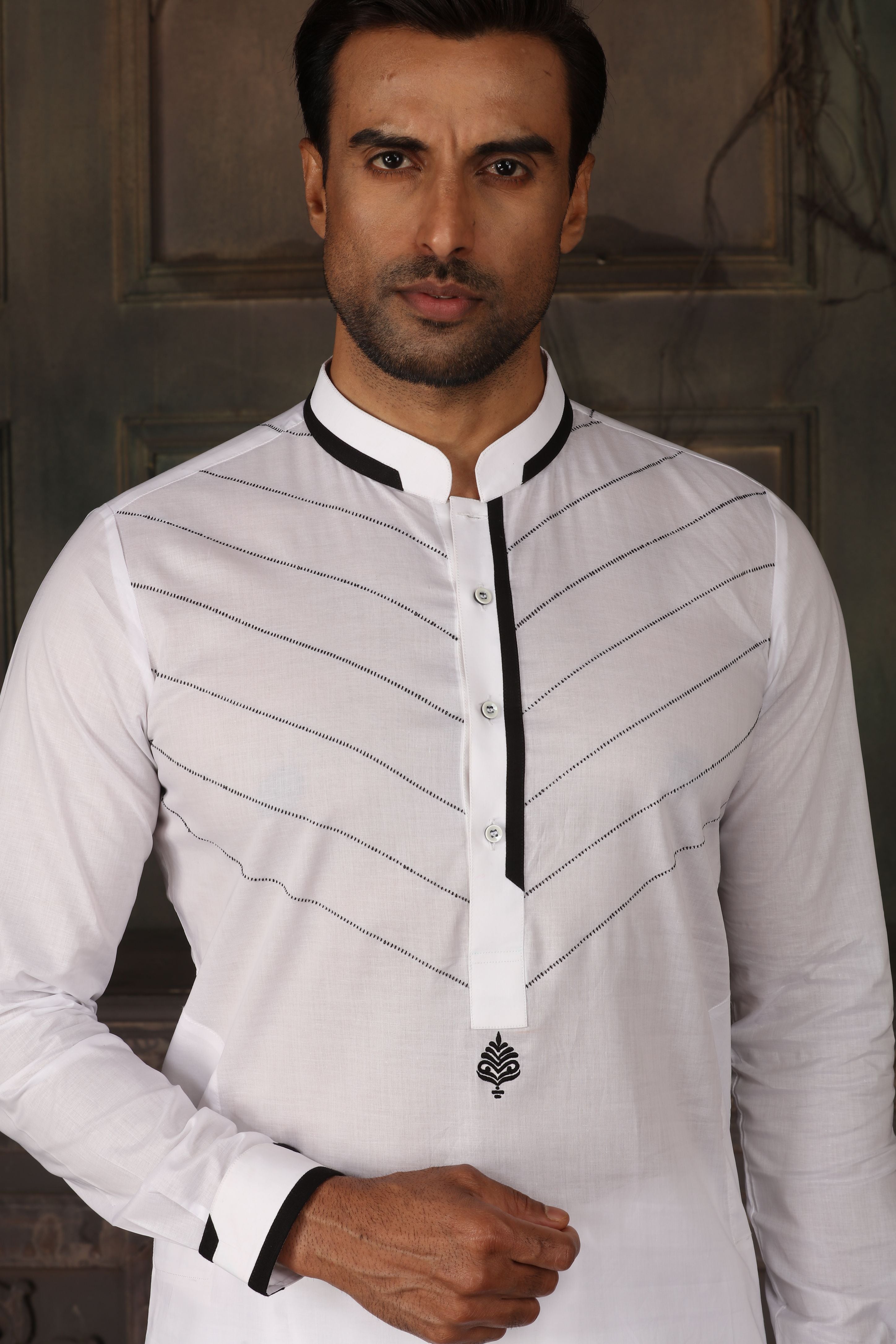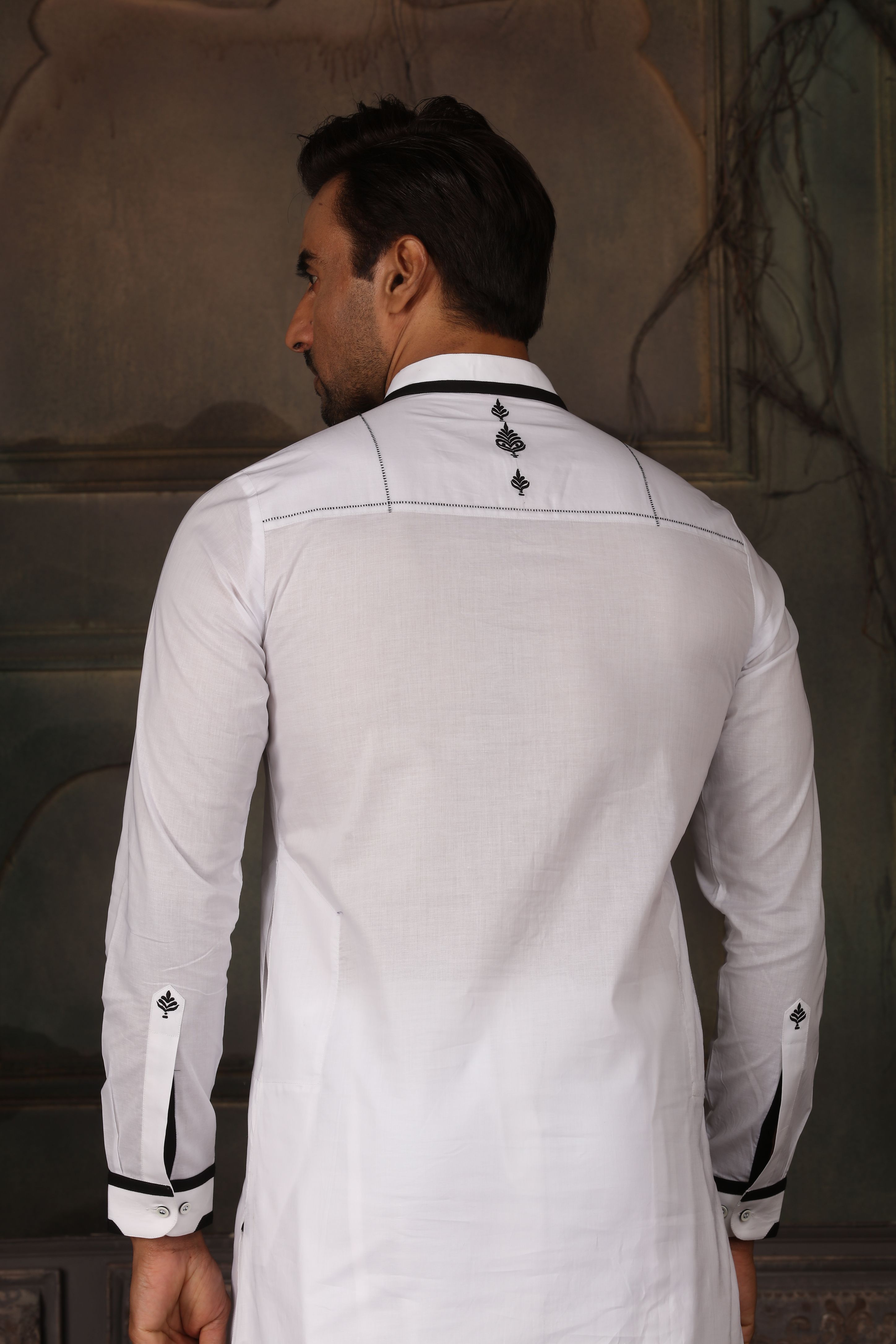 White Cotton Kurta Set with Black Detailing for Men – Dawood Khan Tailors - BBCMR 4020